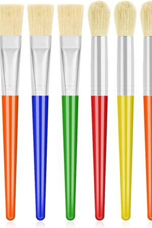 18 Pcs Kids Paint Brushes, Sturdy Paint Brushes for Kids, Big Washable Chubby Paint Brushes Round and Flat Preschool Brushes with No Shed Hog Bristle for Beginner Painters, Preschoolers