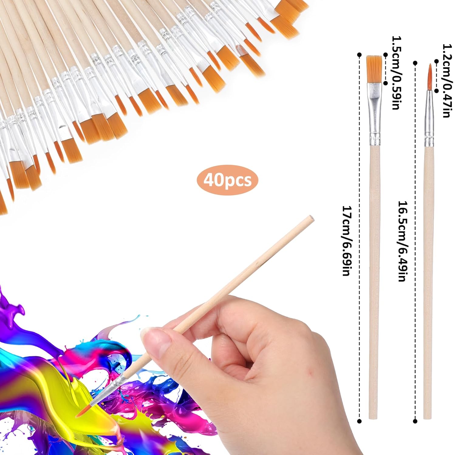 - 【Bulk Brushes】The bulk brush set contains 20 flat-head brushes and 20 round-head brushes, 16.5cm/6.5in long. The two small brushes make coloring easier and allow you to enjoy the fun of painting with your family and friends!